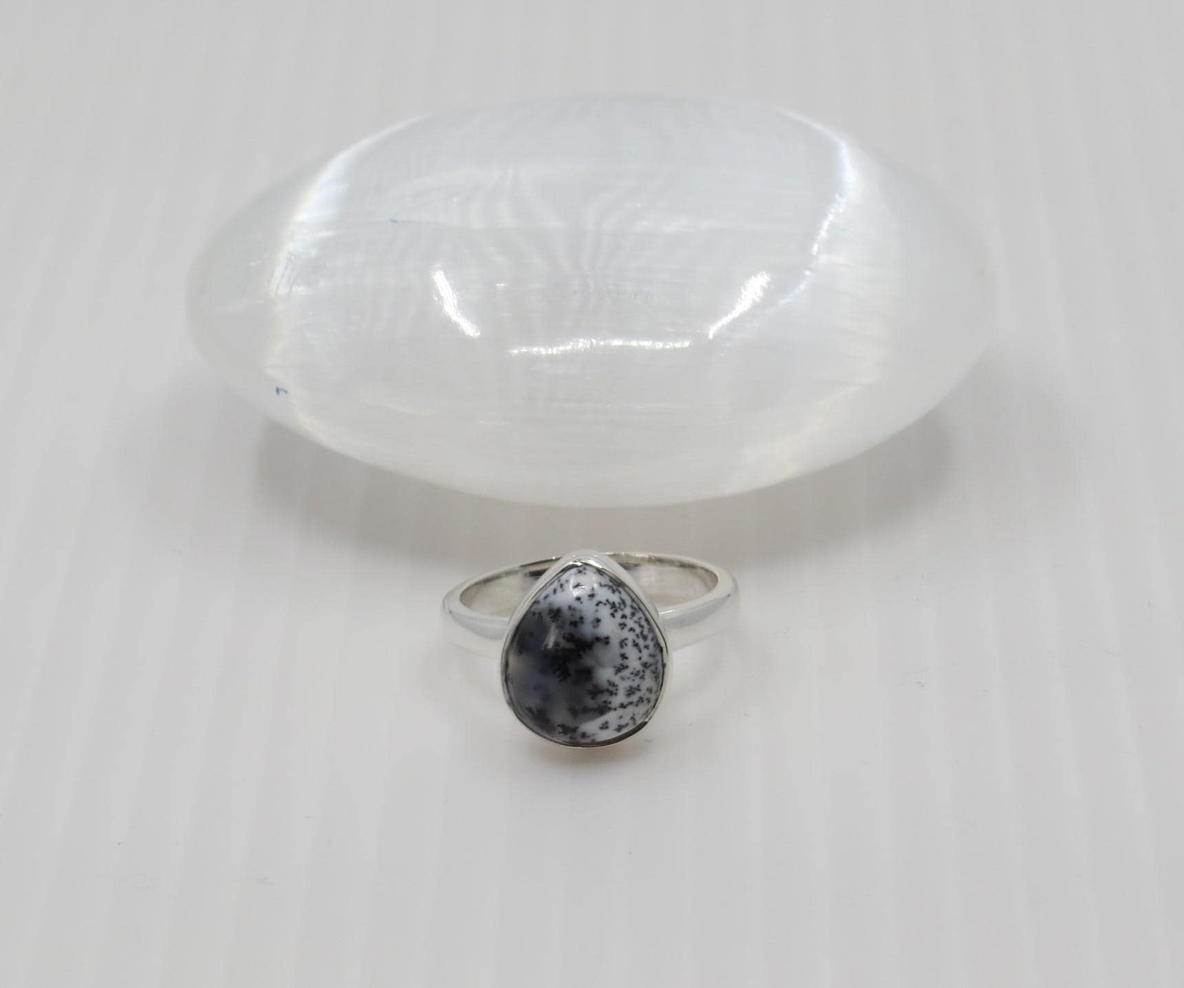 Handmade sterling silver Merlinite ring size M