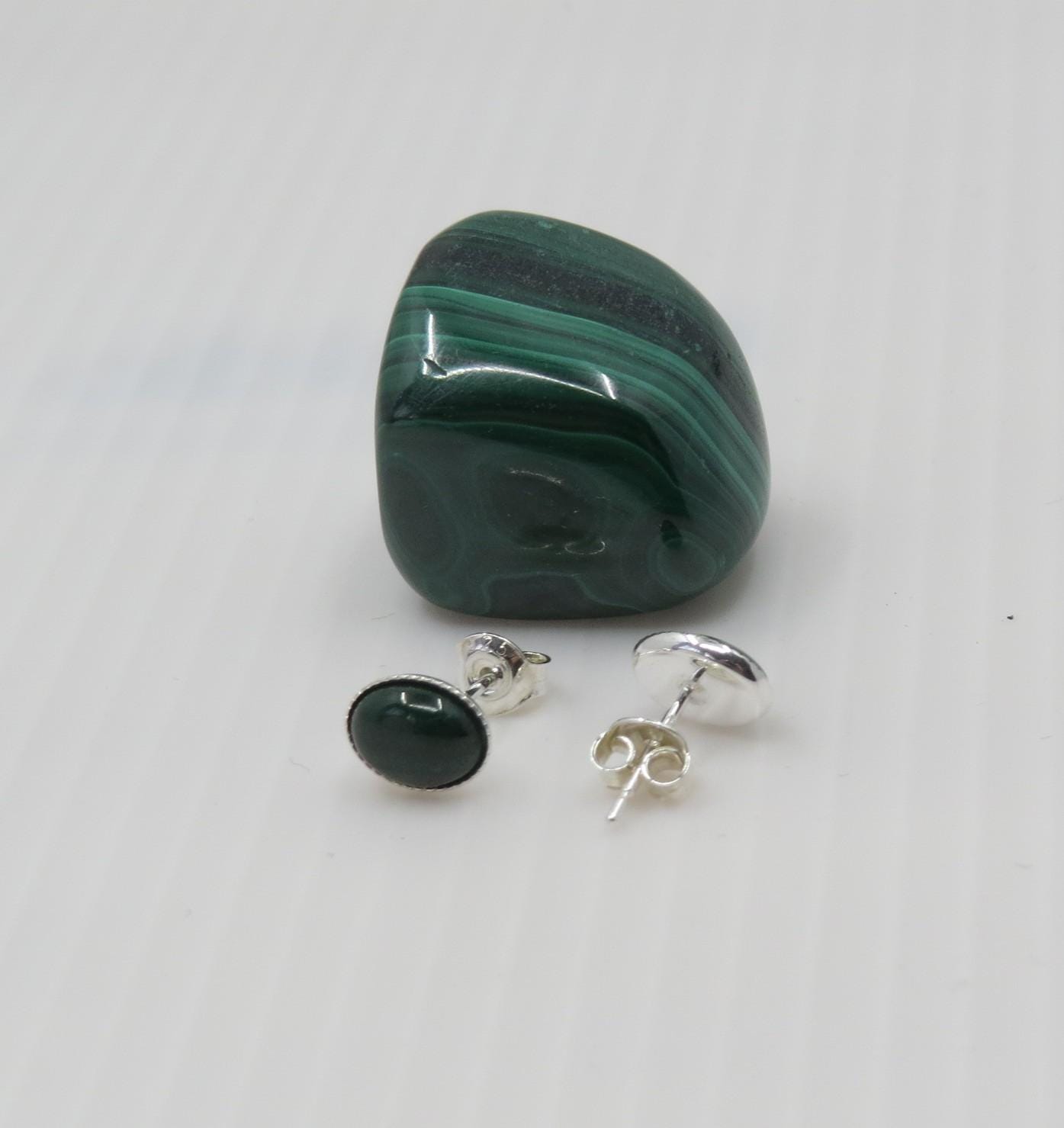 Beautiful handmade oval Malachite studs
