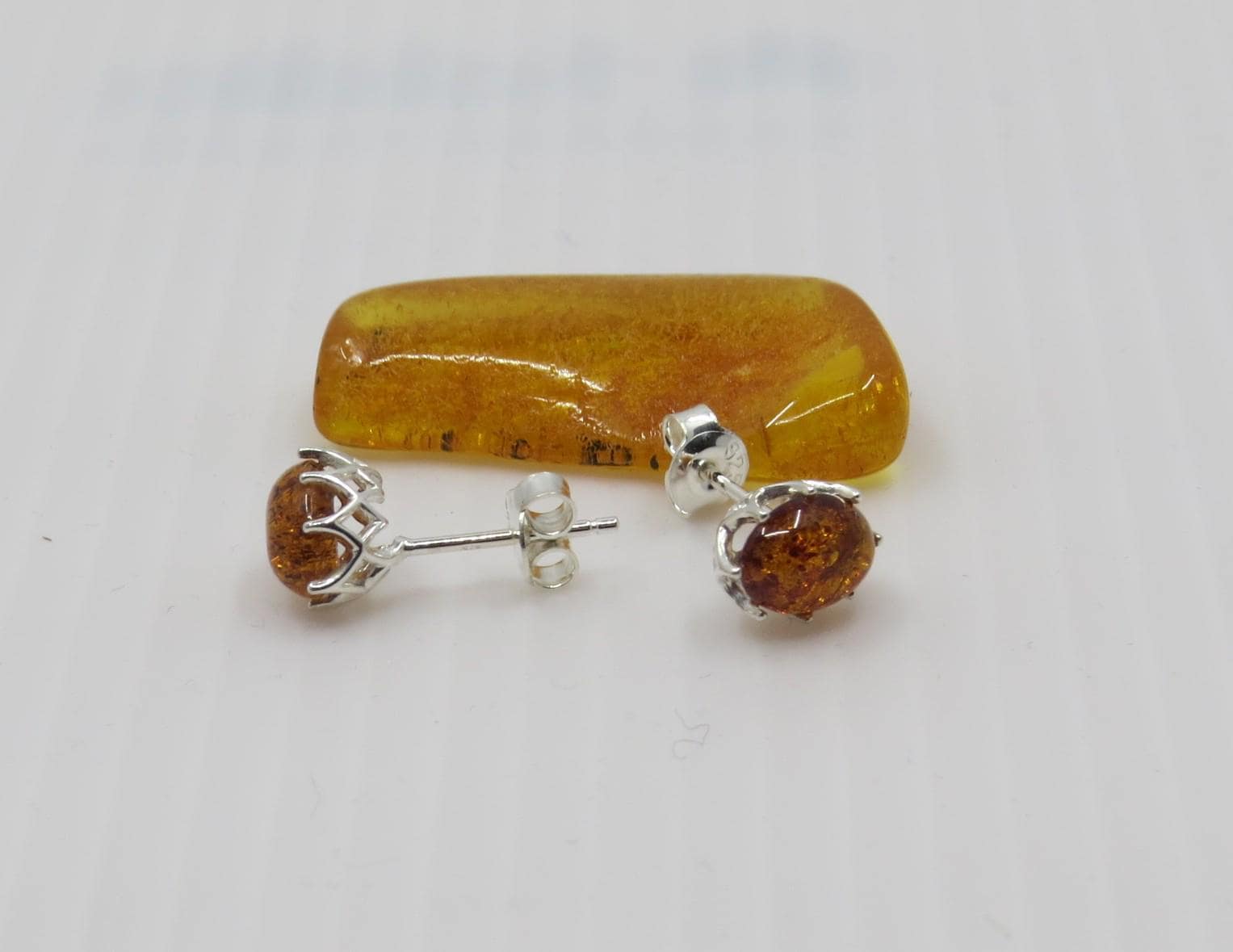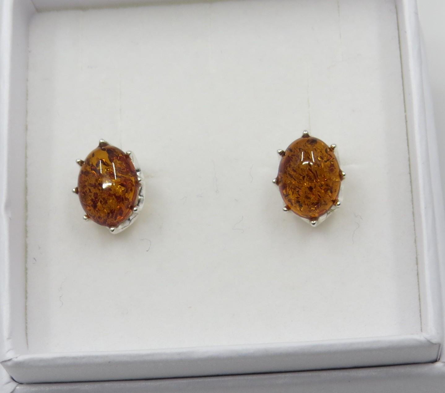 Handmade Baltic Amber Studs, Sterling Silver (8x6mm Gemstones)