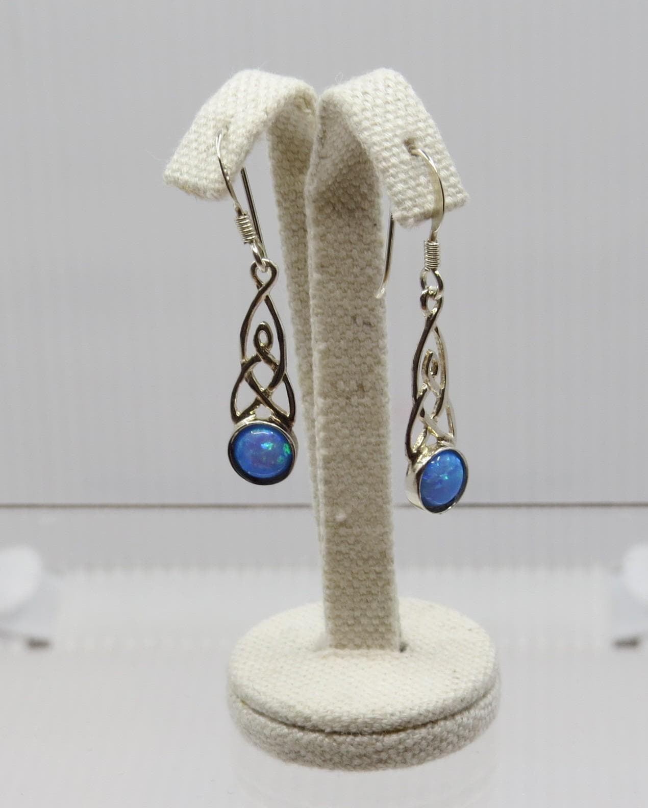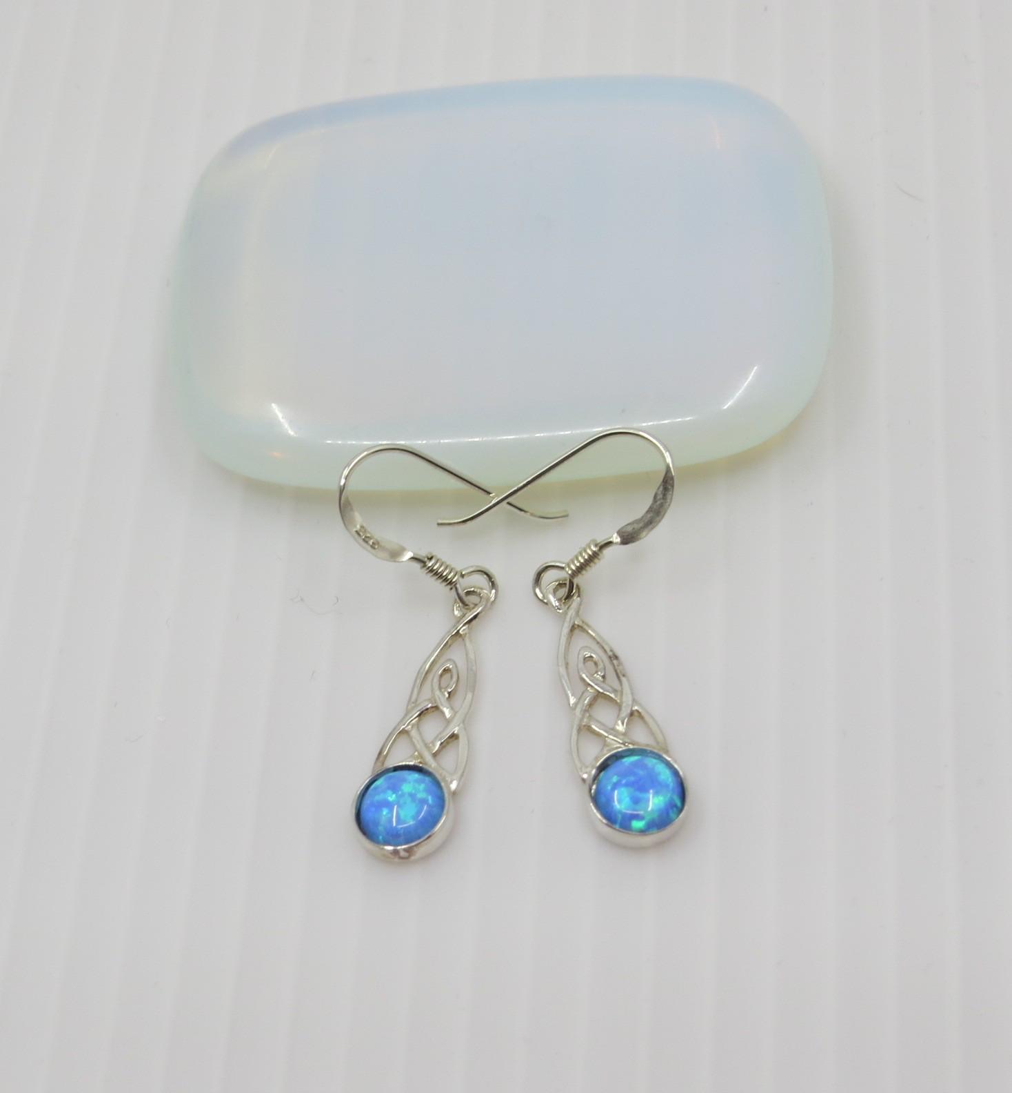 Beautiful Handmade Blue Opal Celtic drop earrings