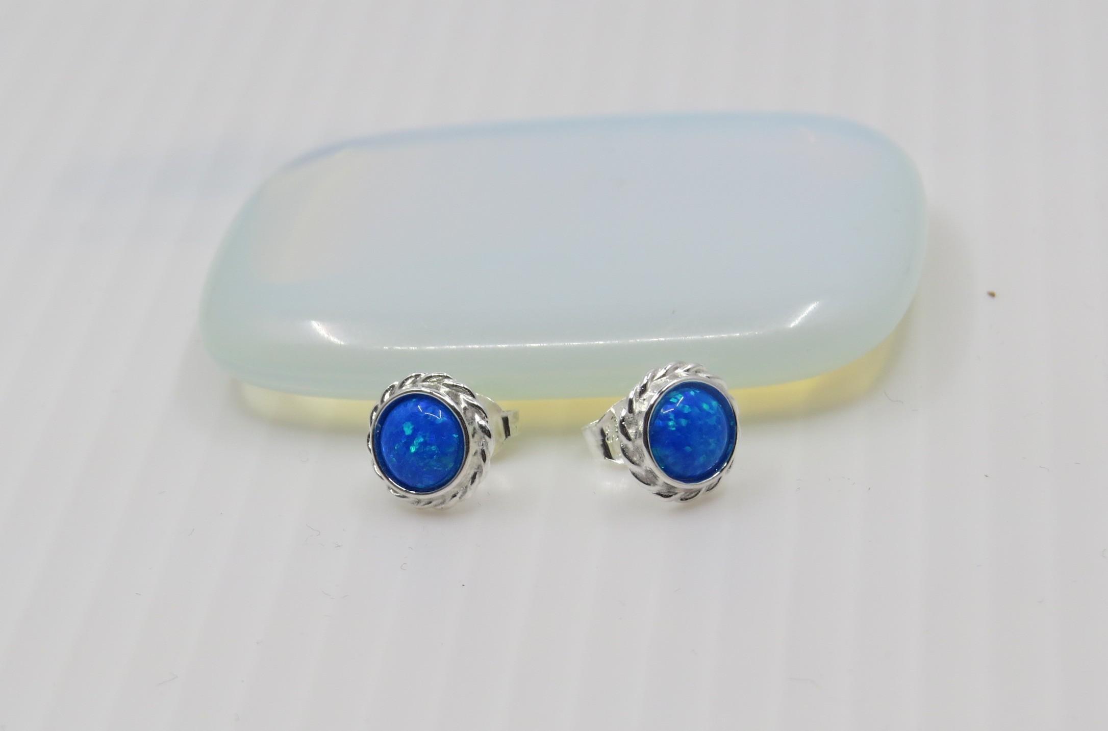Beautiful handmade blue opal stud earrings
