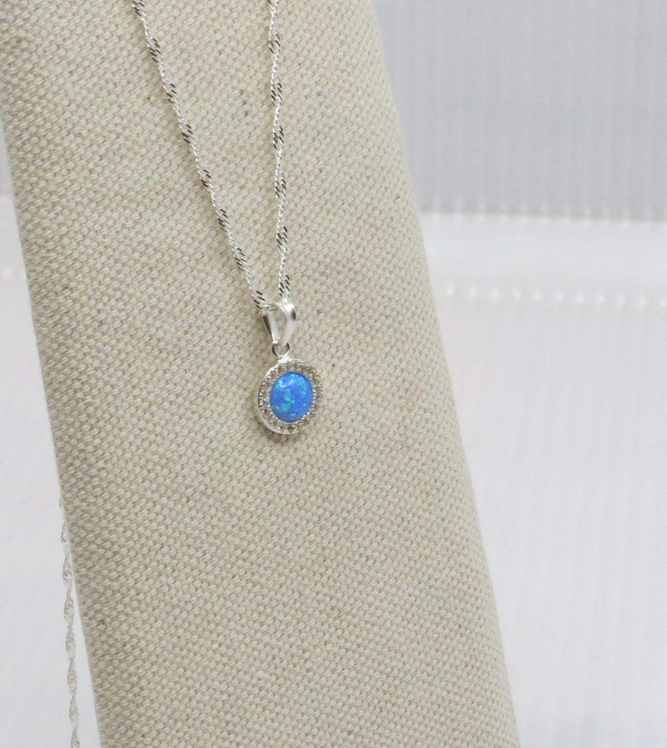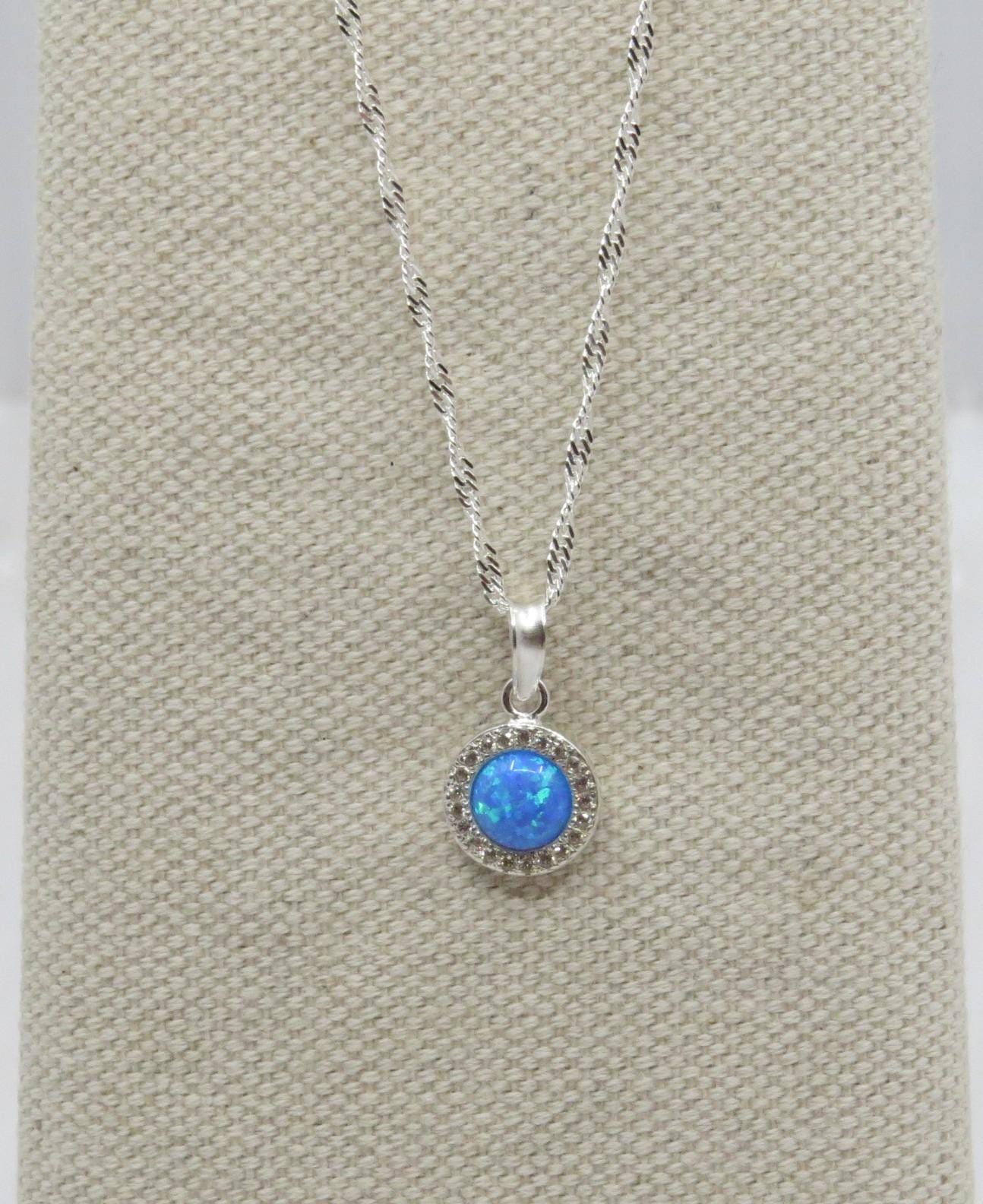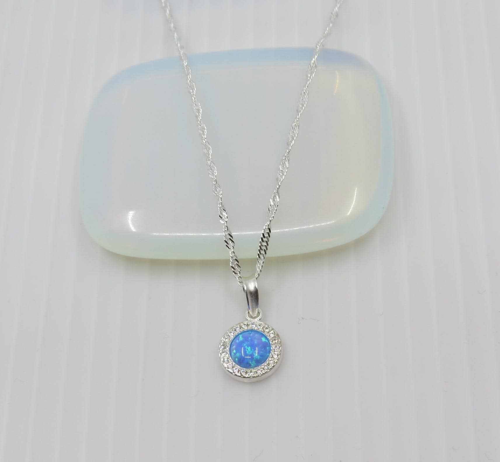 Beautiful handmade blue opal Celtic pendant with cubic zirconia surround