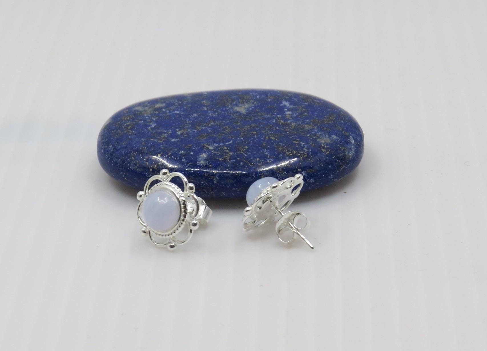 Beautiful handmade Blue Lace agate studs