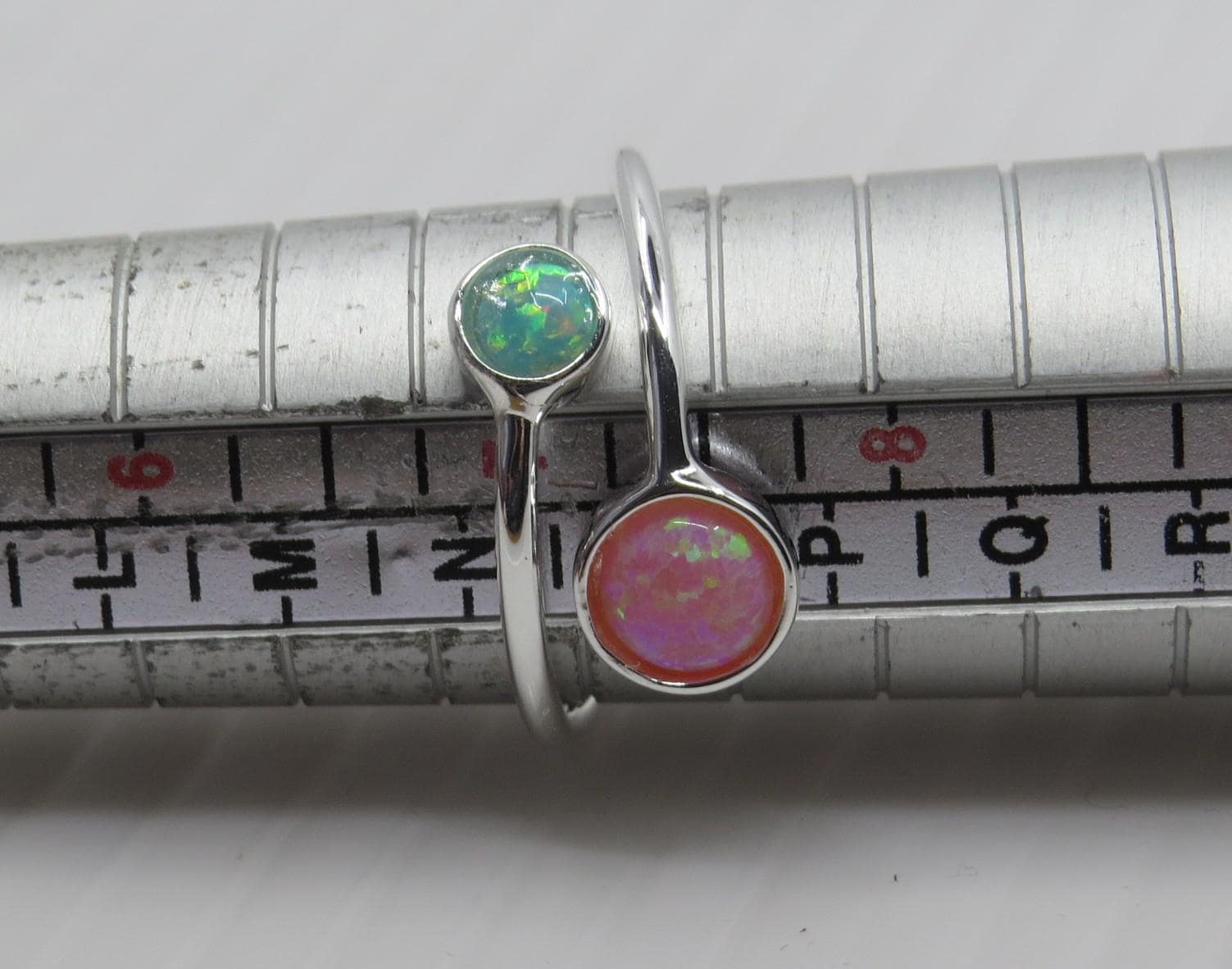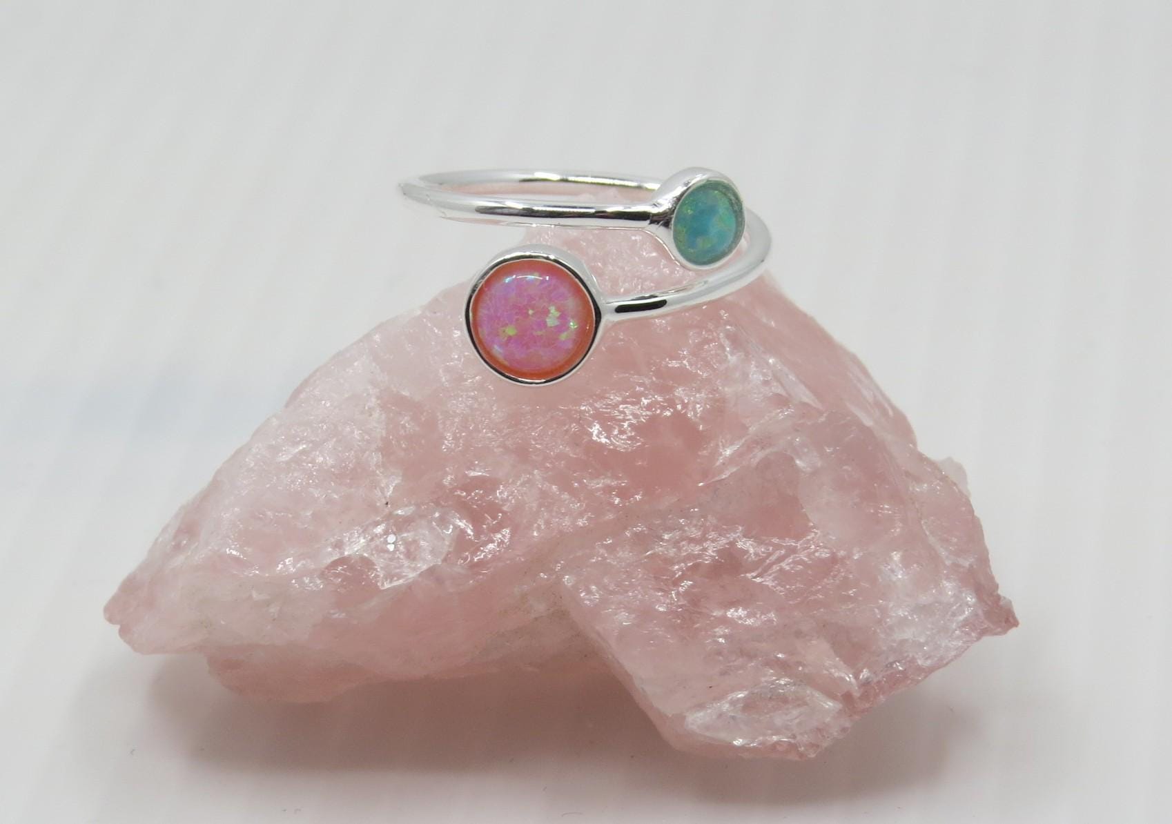Beautiful handmade pink and green opal adjustable ring