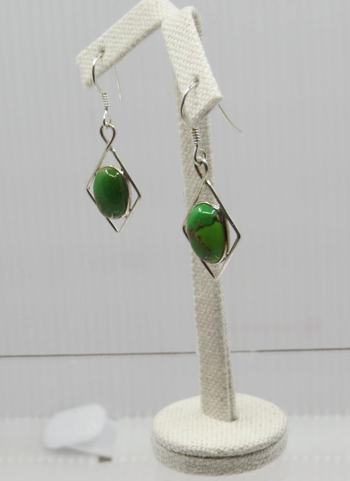 Handmade Green Mohave Drop Earrings set in sterling silver