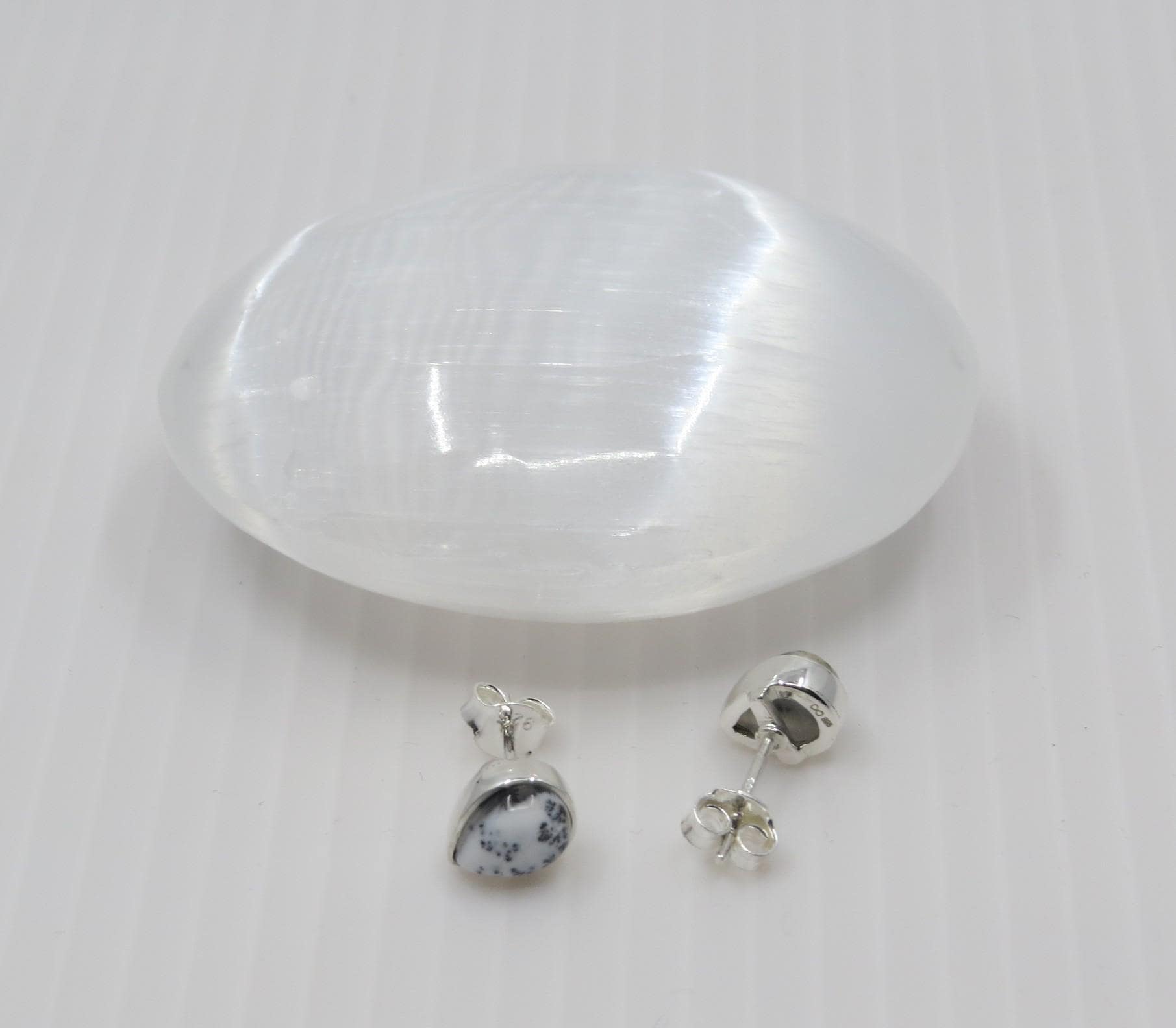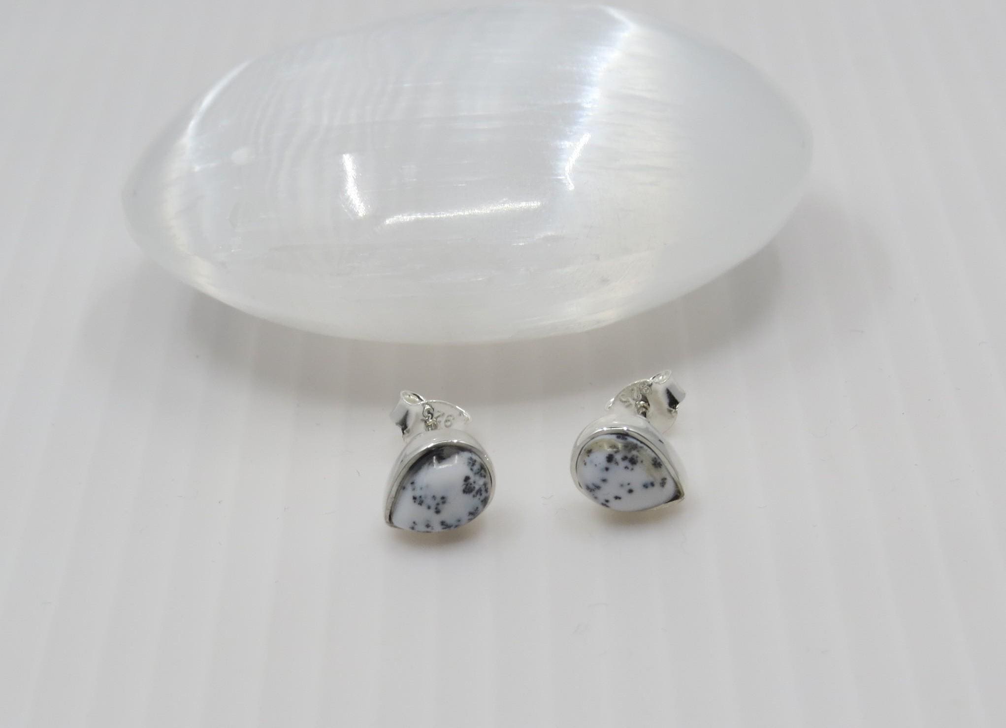 Handmade Merlinite Stud Earrings, Sterling Silver Setting