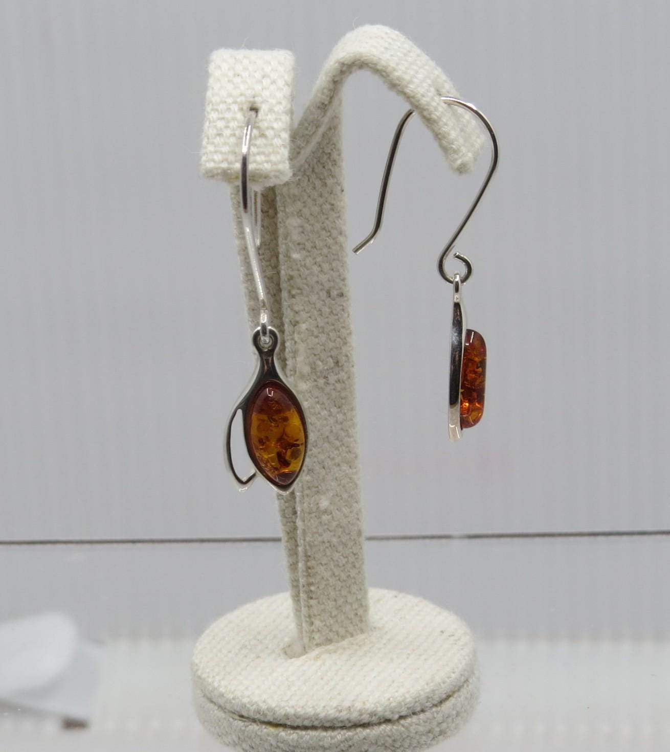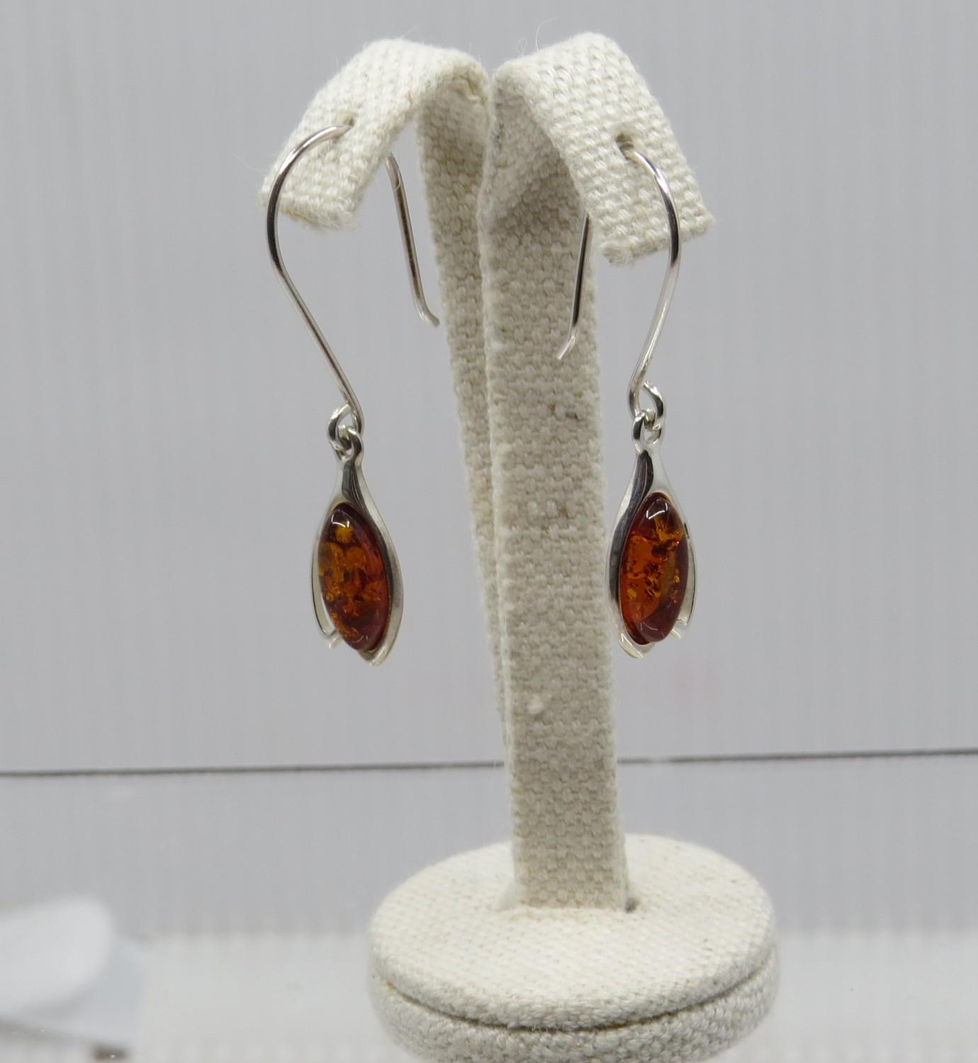 Handmade Baltic Amber Drop Earrings set In Sterling Silver